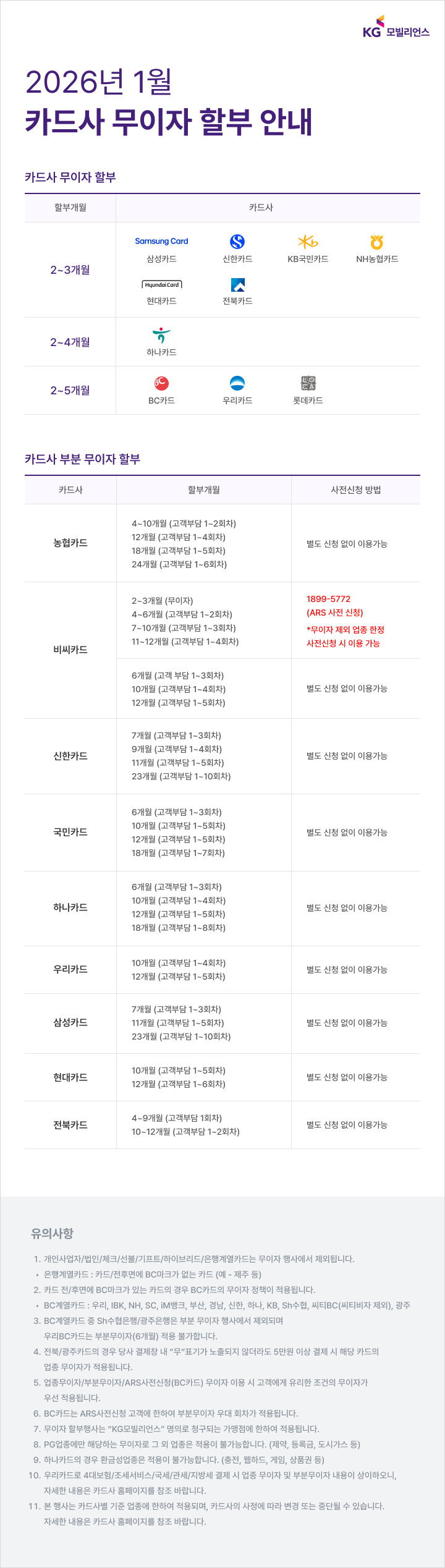 2026년 1월 카드별 무이자혜택