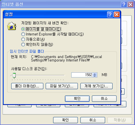 4. 설정을 버튼을 클릭한 후, "페이지를 열 때마다"에 체크하시고 확인 버튼을 클릭합니다.